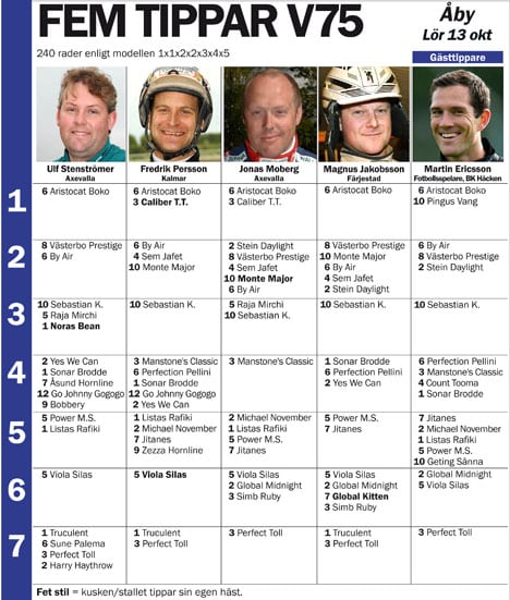 Fem tippar V85 till JÄGERSRO 11 april 2026