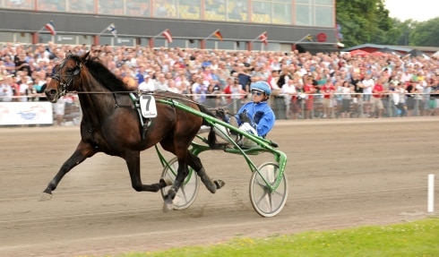 Startsnabbe Brad de Veluwe drog ett passande innerspår i finska storloppet Prix d’Etain Royal i Seinäjoki nästa lördag. I sulkyn sitter hästens tränare Tuomas Korvenoja.